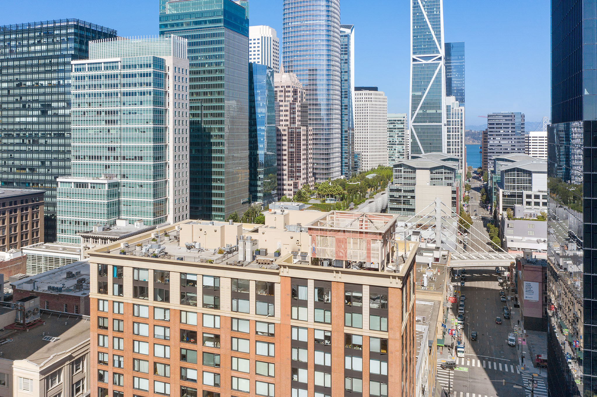 199 New Montgomery has recently re-designed their sophisticated lobby and common areas. The amenities include: 24/7 lobby ambassadors, bike parking and a furnished roof deck with 360 degree views, two BBQs and a fire pit. Live in the heart of San Francisco’s Yerba Buena Cultural District. Minutes from everything – you’re in the heart of San Francisco’s Yerba Buena Cultural District. 5 minute walk from this five-star location to: outdoor cafés and dining, the grocery, Salesforce Park, Yerba Buena Gardens, the Embarcadero Waterfront and its restaurants, dog parks, Fidi, Union Square, + MoMA. Walk Score=94.