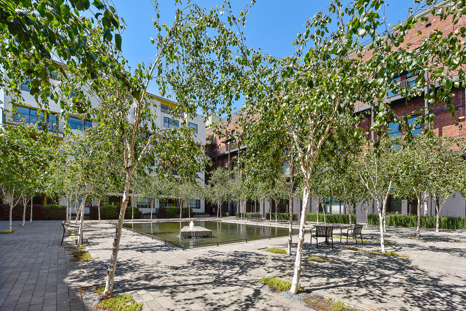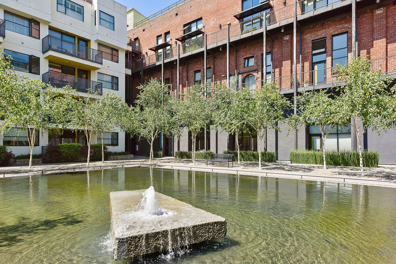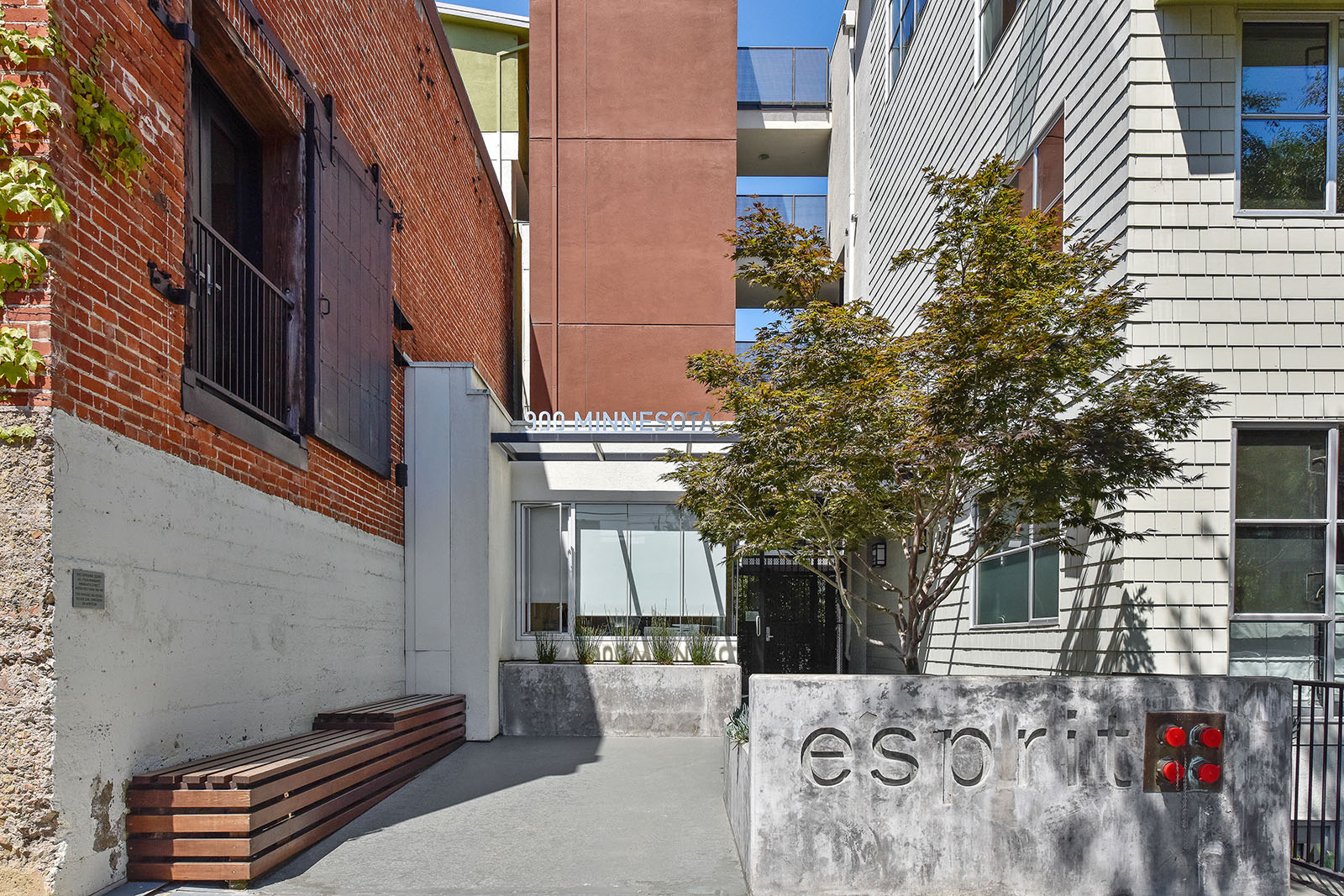 Esprit Park is a small community of modern condo residences in an industrial setting, and is an iconic example of historic building conversion. The open-air courtyards within the community are thoughtfully designed with water elements, outdoor seating and shady trees. The low-rise building is comprised of lofts and condos, with built-in amenities such as Google fiber high-speed Internet and in-floor radiant heating system. Esprit Park Amenities also include: