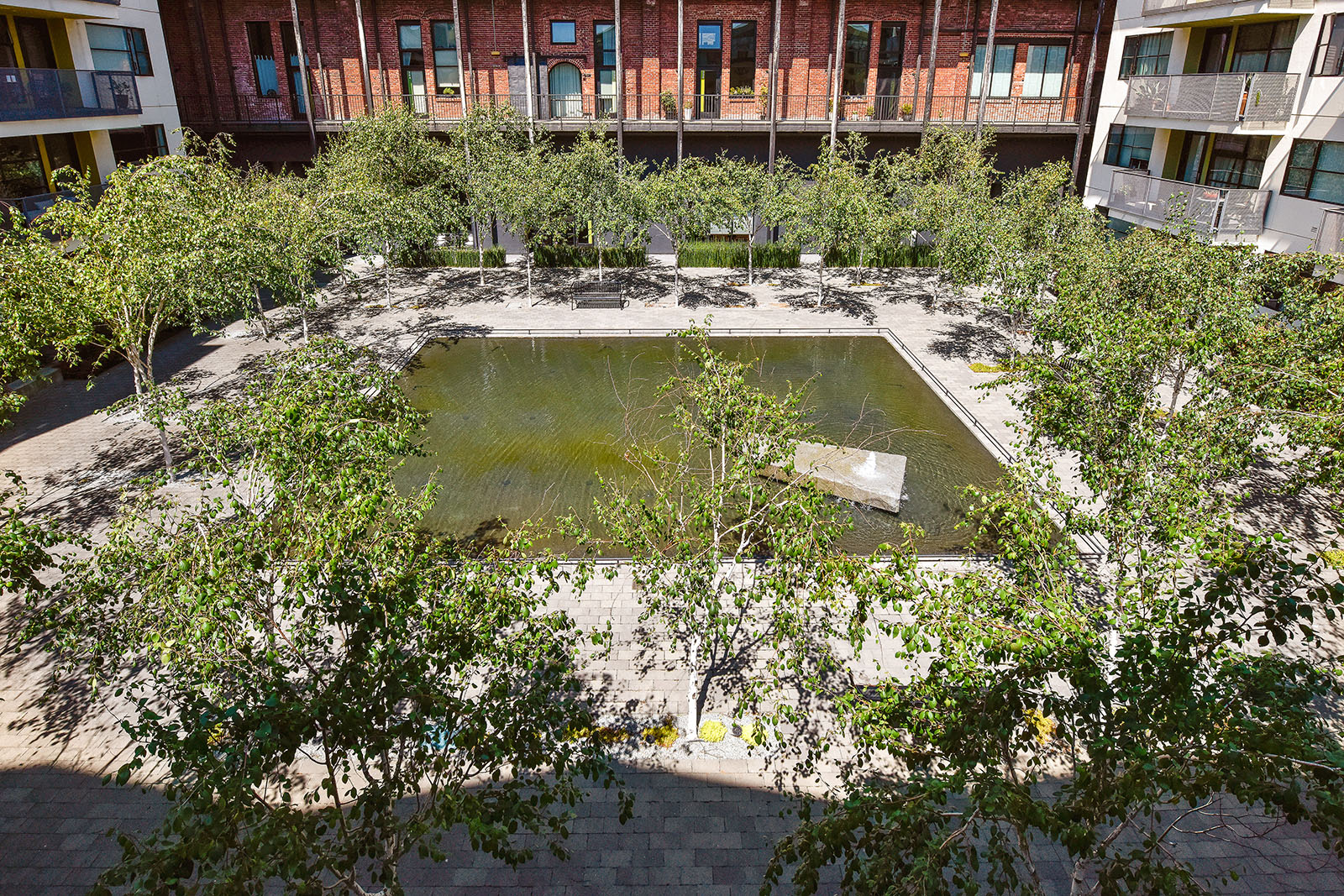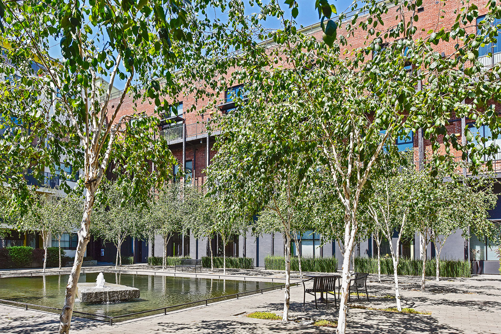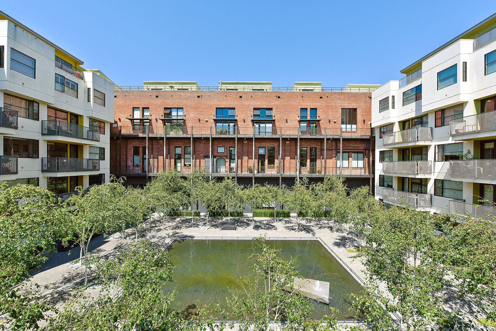 Esprit Park is a small community of modern condo residences in an industrial setting, and is an iconic example of historic building conversion. The open-air courtyards within the community are thoughtfully designed with water elements, outdoor seating and shady trees. The low-rise building is comprised of lofts and condos, with built-in amenities such as Google fiber high-speed Internet and in-floor radiant heating system. Esprit Park Amenities also include: